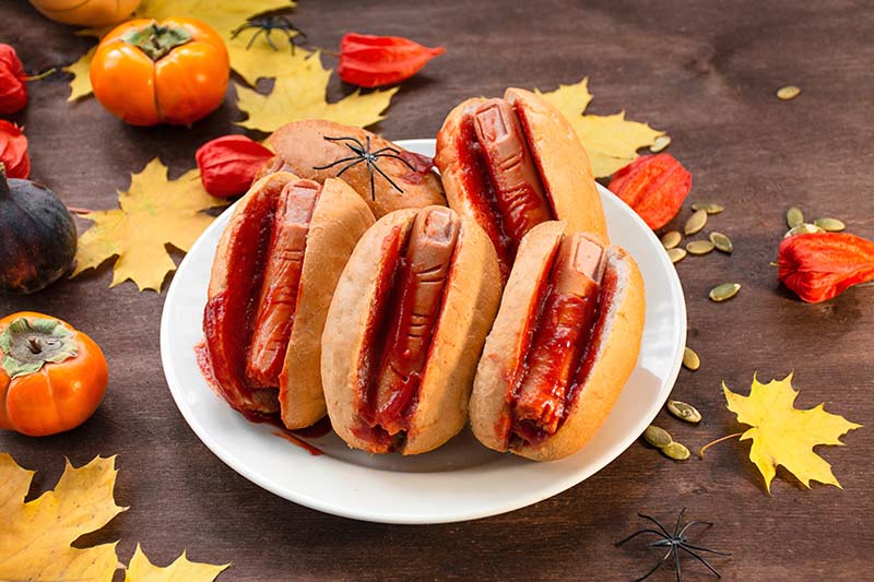 Hvad med nogle afskårne pølse-fingre med ketchup og brød? Perfekt som Halloween-mad!