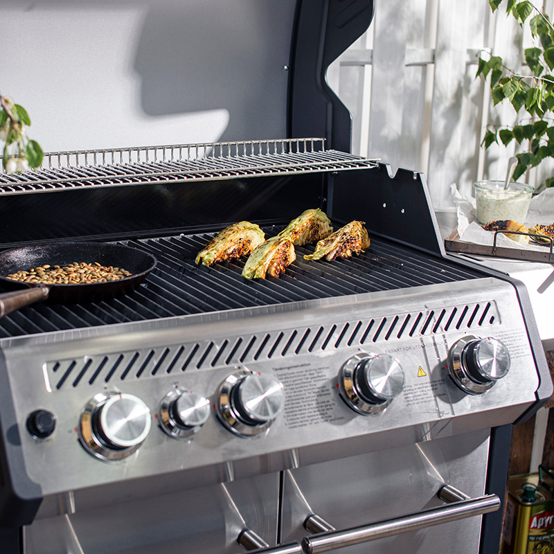 Grillet spidskål og ristede græskarkerner på Bluegaz X1.