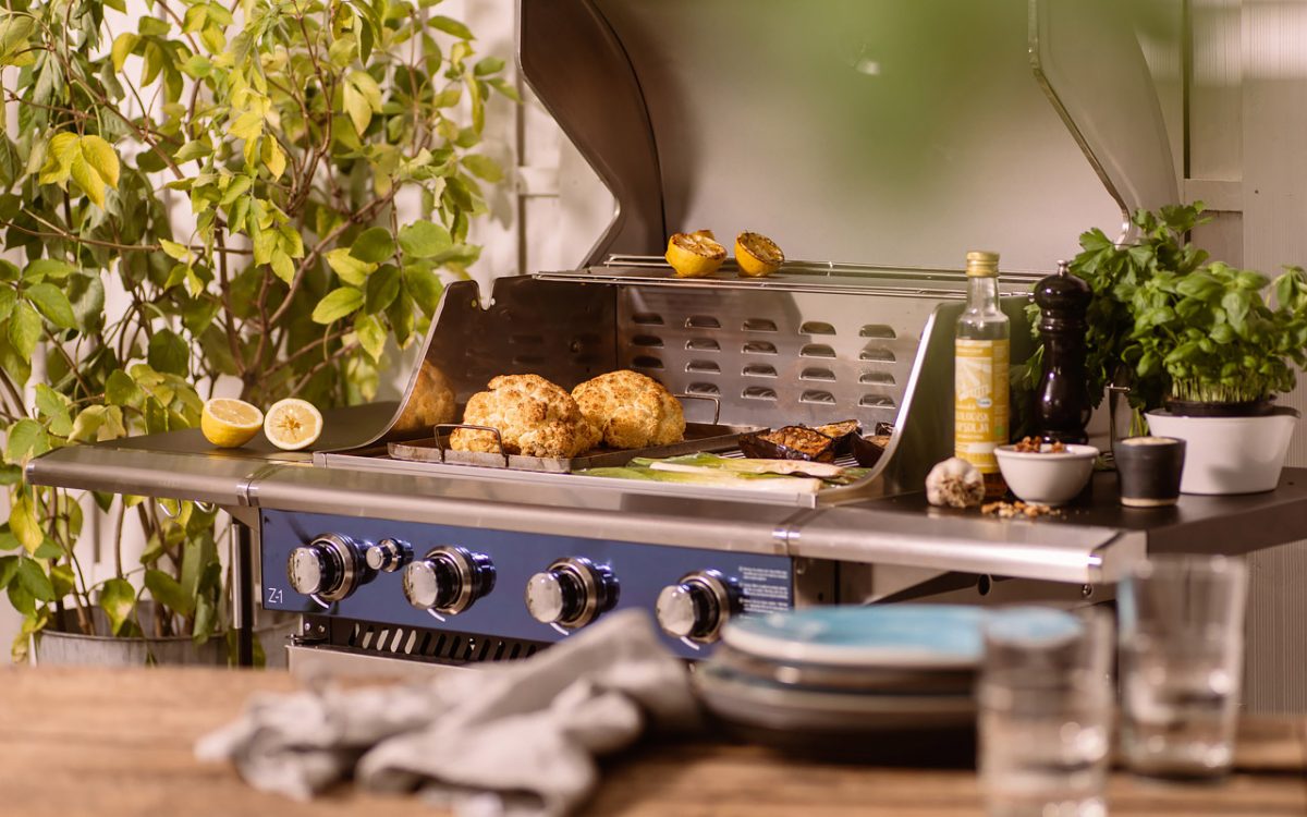 Grillet blomkål og aubergine på Bluegaz Z1.