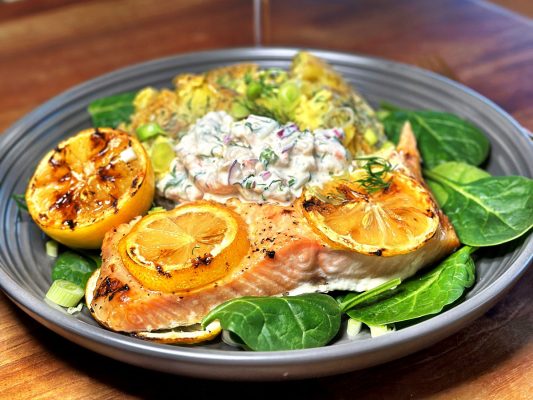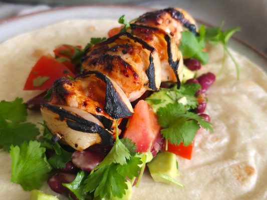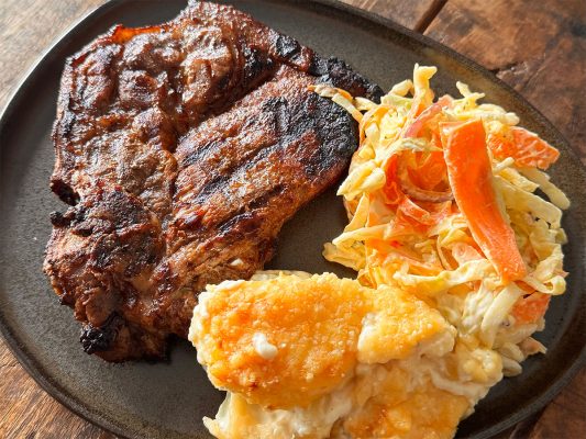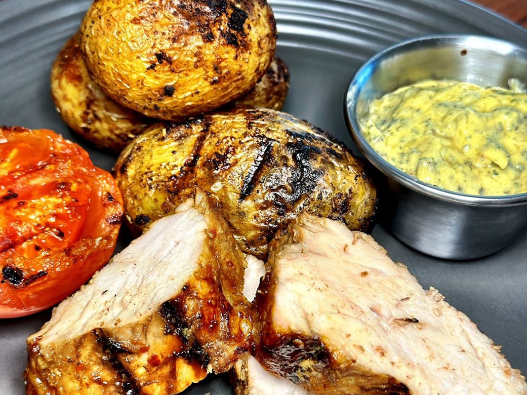 En virkelig lækker ret, der fremhæver grillsmagene, ikke kun fra kødet men også fra kartoflerne. Her mødes sødt og stærkt. Sødeligheden fra honningen og styrken fra chilien. Simpelt og virkelig lækkert.