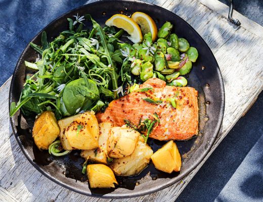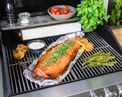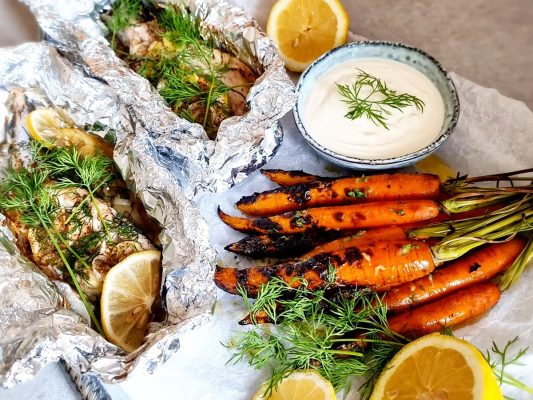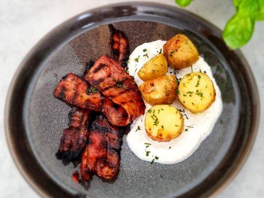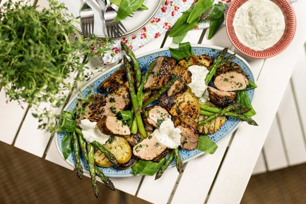Opskrift – Honningmarineret helgrillet flæskytterfilet med grillet kartoffel