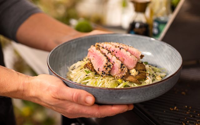 - Læg kødet på grillen og grill først på direkte varme, så du får en flot overflade på alle sider.