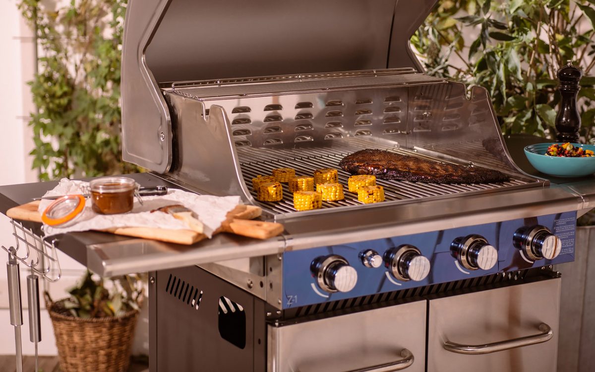 Grillning af Jamaican Jerk-revet ben og majs på Bluegaz Z1.