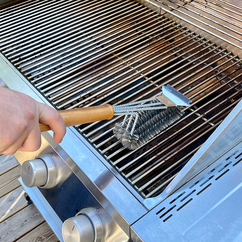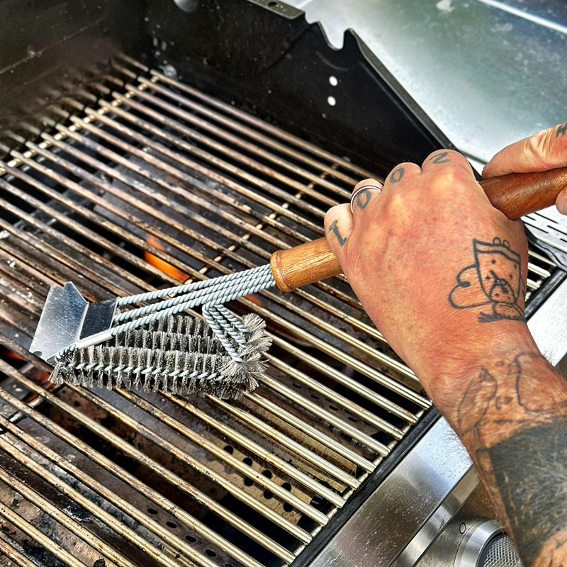 Rengør grillristen effektivt med denne kraftfulde grillgitterbørste! Denne grillgitterbørste er udstyret med en tripelbørste i stål samt en stålskraber for maksimal rengøringseffekt.