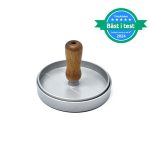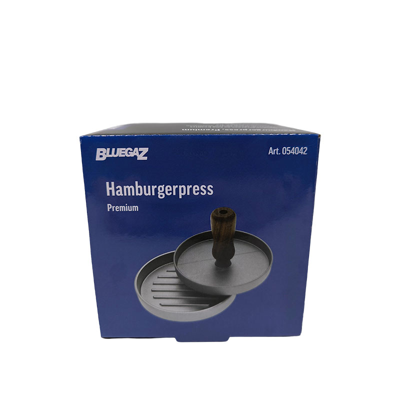 Hamburgerbøffer i forskellige mærkelige størrelser, buede, ujævne, der går i stykker eller falder gennem grillristen? Problemer, du ikke længere behøver at udsættes for! Med Bluegaz hamburgerpresser i støbt aluminium former du hurtigt runde, fine og symmetriske bøffer. Pressen har et godt greb, og bøfferne får lækre striber fra den mønstrede design.