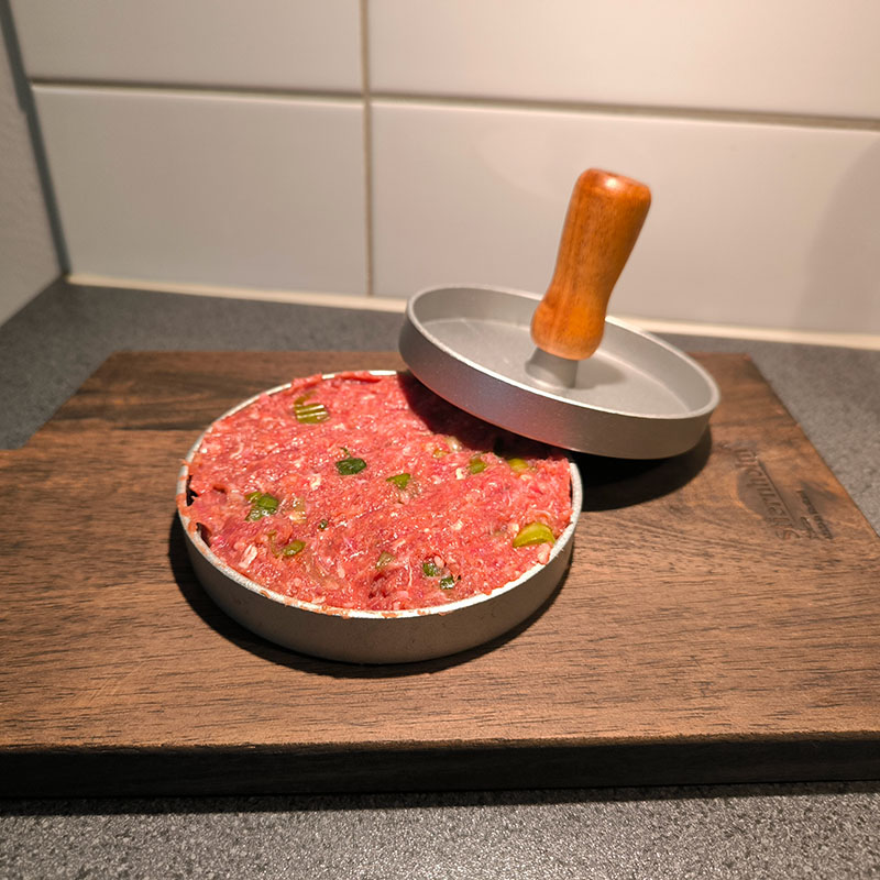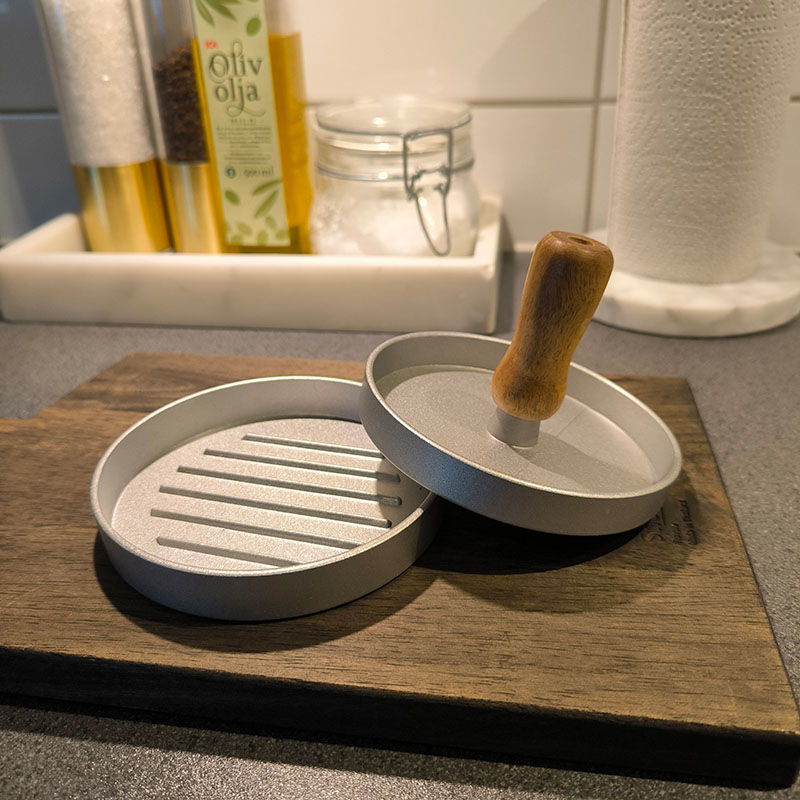 Glæd dig over at lave symmetriske klassiske burgere og nyd at lægge de fine bøffer på grillristen. Eller hvorfor ikke bruge formen til at lave veggieburgere af bønner og kikærter?