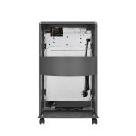 Gasvarmen tændes hurtigt via piezotænding, og effekten justeres nemt ved at dreje på knappen på toppen. For at starte elvarmen bruger du de tre knapper. Den lave vægt og de fire hjul gør pejsen nem at flytte, og når du ikke længere skal bruge den, kan den nemt klappes sammen.