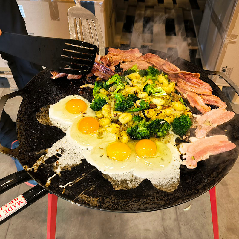 Stegepladens tykkelse på 3 mm sikrer en god og jævn varmefordeling, hvilket skaber en fantastisk stegeflade og utroligt smag hver gang. Hver stegning gør også, at stegepladen kun bliver bedre med årene. Med en stegeplade er det nemt at lave flere retter samtidig. Hvorfor ikke stege nogle pandekager og flæsk eller en rigtig lækker pyttipanna? Med en stegeplade er mulighederne ubegrænsede!