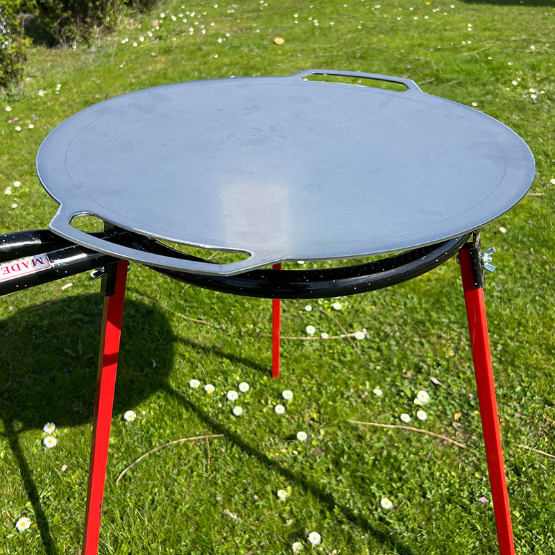Denne stegeplade er 50 cm bred og har to håndtag for nem transport. Pladen er fremstillet af højkvalitets koldvalset stål i Småland og kan bruges direkte over åben ild eller en gasbrænder. Perfekt til hyggelige picnicudflugter eller grillfester på terrassen!