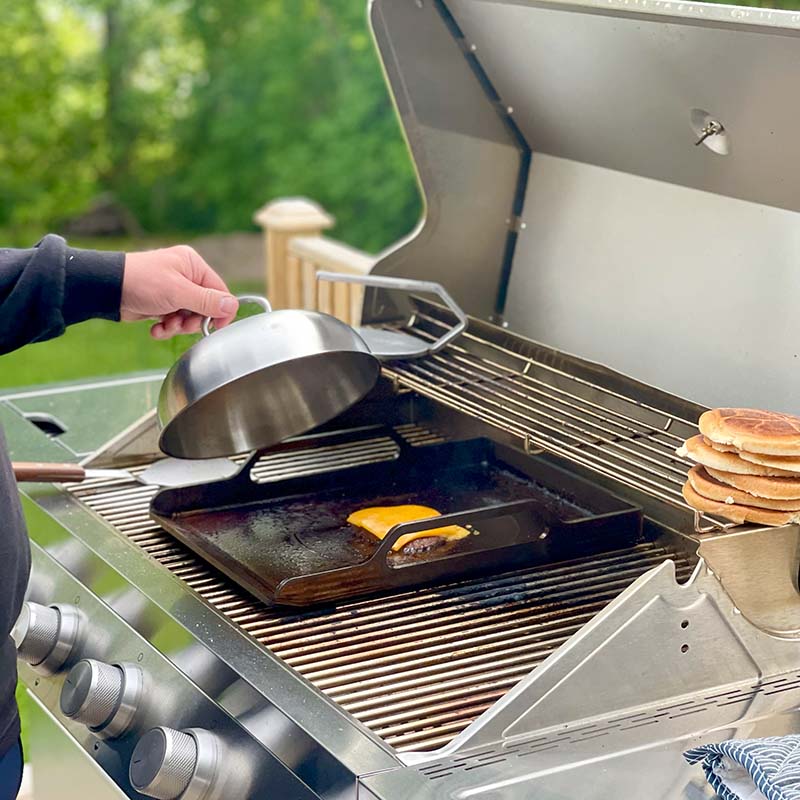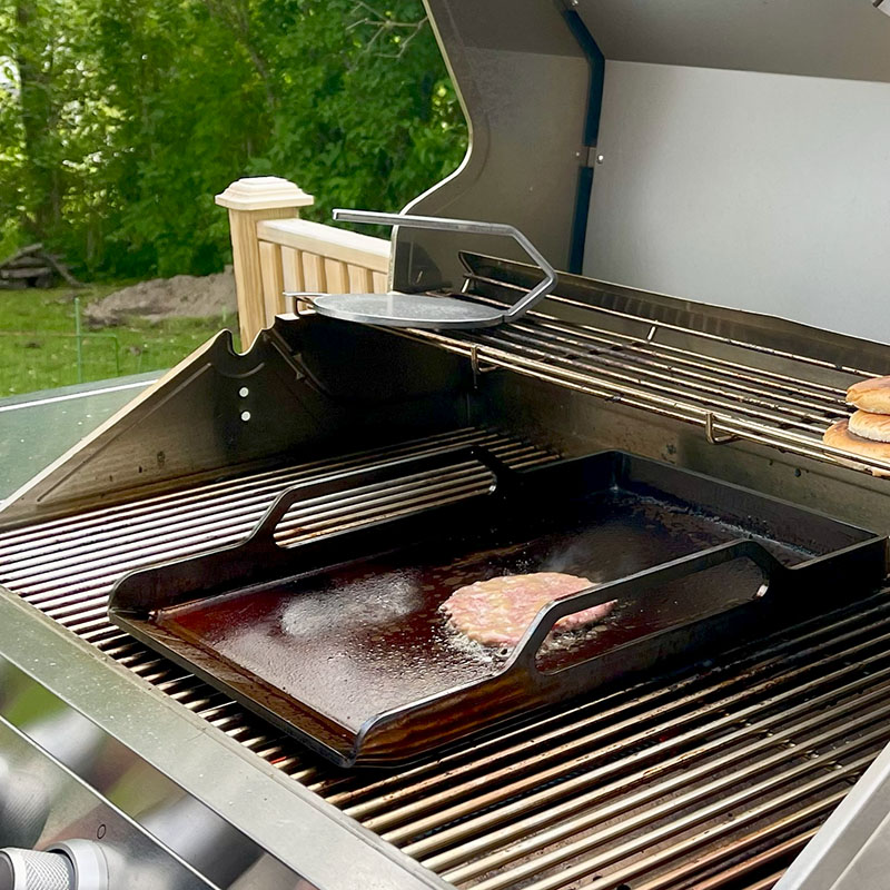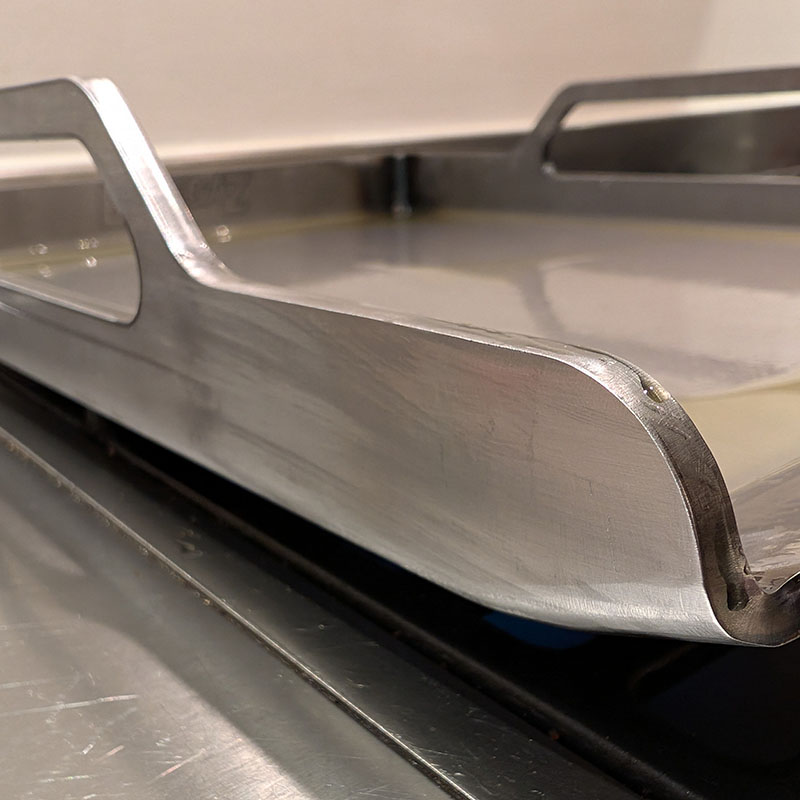 Få optimale resultater med en stegeplade i svensk varmvalset stål! Denne fuldsvejste stegeplade med forhøjet forkant er 30 x 40 cm og perfekt til brug på alle typer kogeplader og komfurer.
