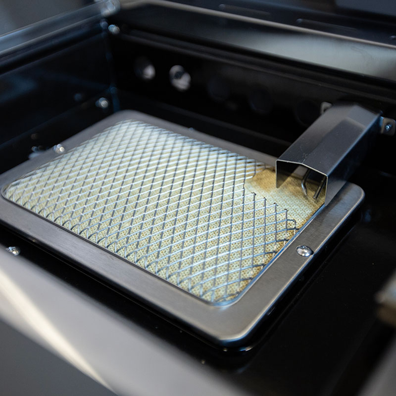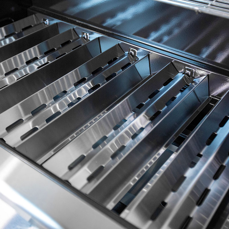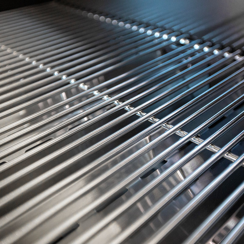 Med en imponerende grillflade på 77 x 45 cm og to ekstra madlavningszoner i sidobordene, tilbyder X502 masser af plads til at lave en hel menu på grillen. X502 er udstyret med to grillriste i 304 rustfrit stål, et materiale kendt for sin hurtige opvarmningsevne, vedligeholdelsesvenlighed og høje modstandsdygtighed mod rust og slid. Varmehylden holder den færdiggrillede mad varm, indtil det er tid til at servere.