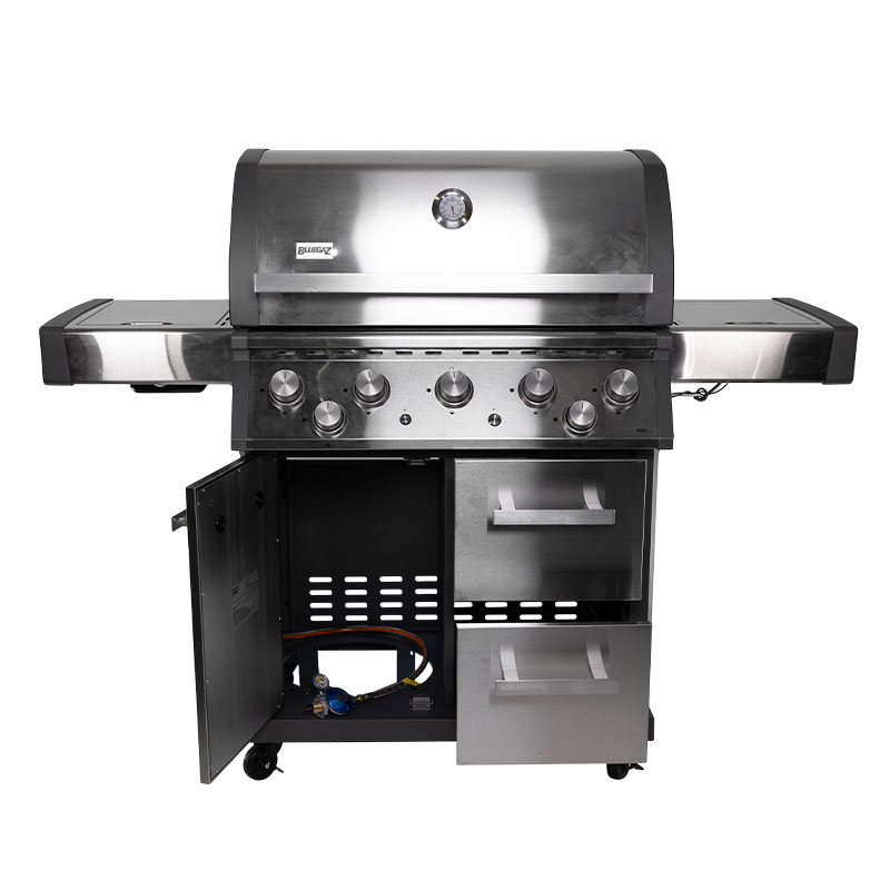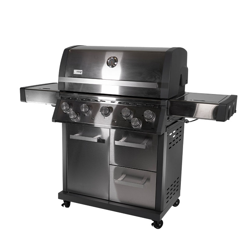Lav en hel menu direkte på grillen! Bluegaz X502 er det perfekte valg for dig, der ønsker en eksklusiv og højtydende grill med generøs opbevaring og mange madlavningsmuligheder.