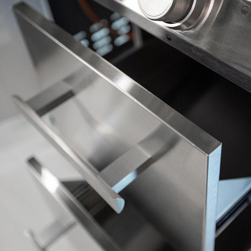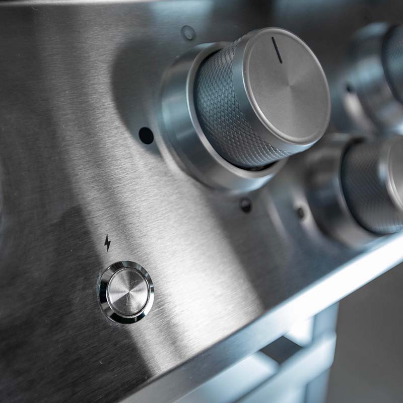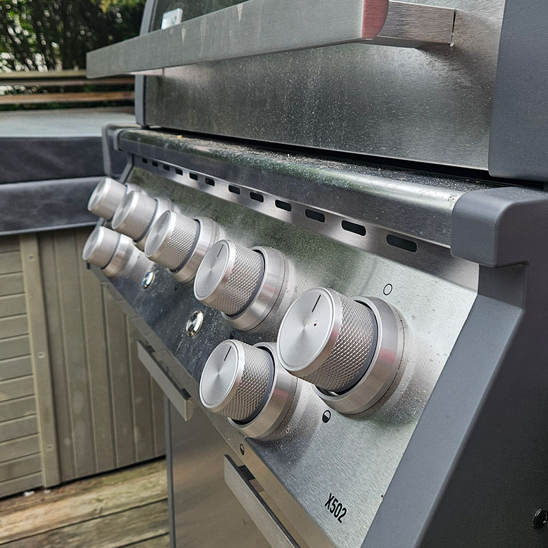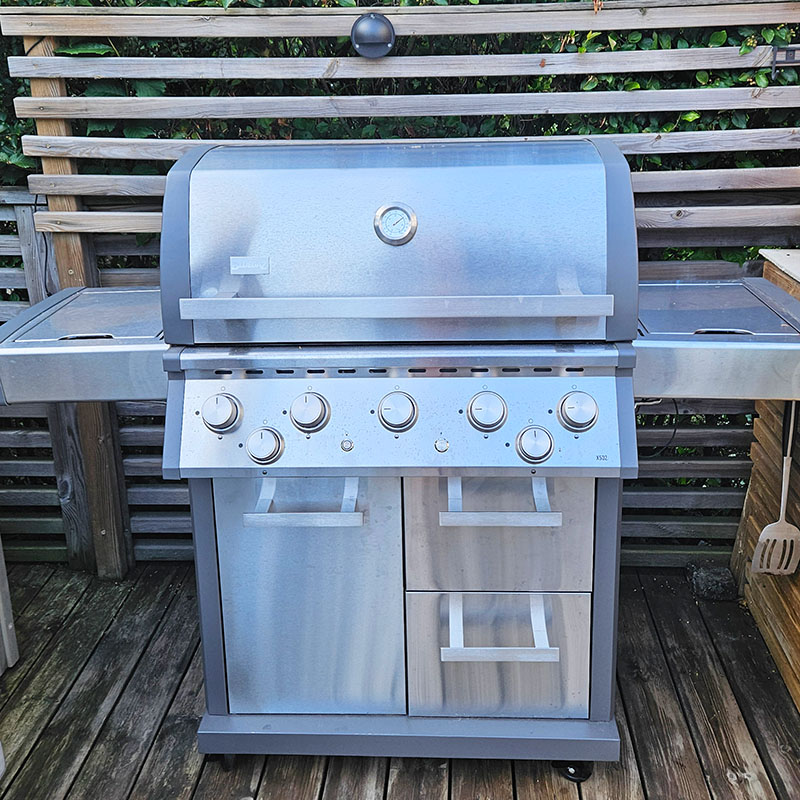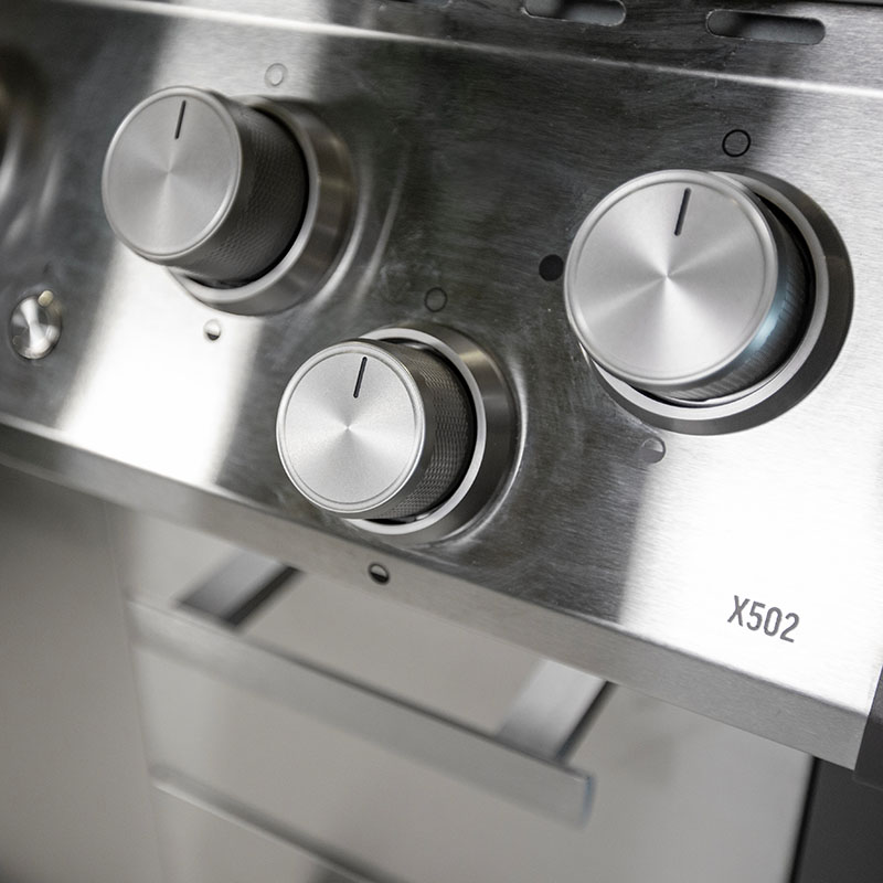 Bluegaz X502 er fremstillet i slidstærkt rustfrit stål med detaljer i aluminium og lakeret stål, hvilket sikrer en lang levetid ved regelmæssig vedligeholdelse. Med sit robuste og stilfulde design bliver X502 et kraftfuldt indslag på terrassen, der helt sikkert vil opfordre til mange grillfester.