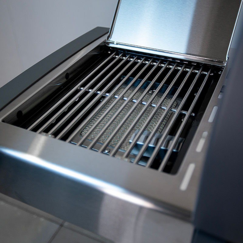 Bluegaz X502 er udstyret med fem høj-effektive hovedbrændere i rustfrit stål, hver med en imponerende effekt på 3,5 kW. Derudover tilkommer der to ekstra madlavningszoner i form af en sizzle burner på 3,5 kW og en kogezone på 3,5 kW, hvilket giver grillen en imponerende total effekt på 24,5 kW.