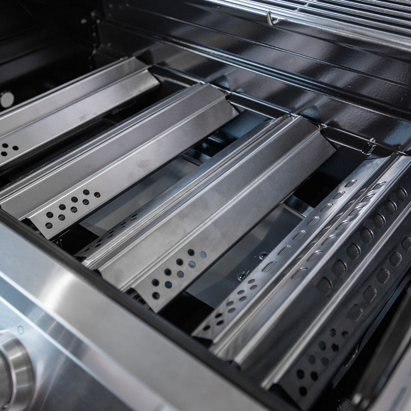 Sizzle burneren er praktisk integreret i grillytan og designet til at levere højintensiv varme. Med denne funktion kan du hurtigt og effektivt brune kød og andre ingredienser. Resultatet bliver en gylden, karamelliseret overflade med rig smag, samtidig med at kødet bevarer sin saftighed og mørhed indeni. Begynd med at tilberede kødet over sizzle burneren, indtil det får en flot skorpe, og flyt det derefter over til den almindelige grillyta for at grille videre ved lavere varme.