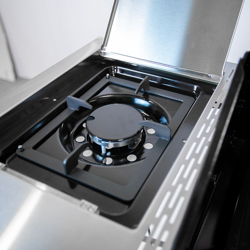 Kokpladen er smart placeret i det ene sidobord og er perfekt til at tilberede tilbehør som grøntsager, saucer eller andre retter. Brug den til at koge, stege eller sautere side retter i en gryde eller pande, mens du griller hovedretten på den almindelige grillyta.