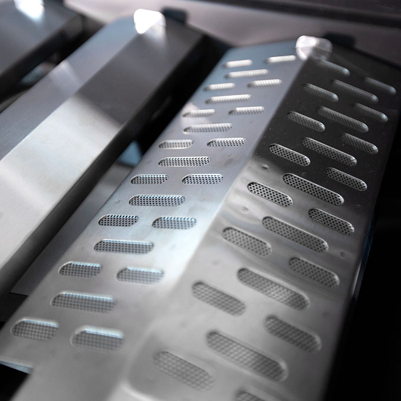 Sizzle burneren er smart integreret i grillytan og udviklet til hurtigt at generere høje temperaturer. Denne funktion er perfekt til hurtigt at brune kød eller andre råvarer, hvilket skaber en dejlig karamelliseret overflade, samtidig med at indersiden bevarer sin saftighed. Start med at give kødet en fin stegeskorpe på sizzle burneren og overfør det derefter til de andre brændere for at tilberede det videre på lavere temperatur.