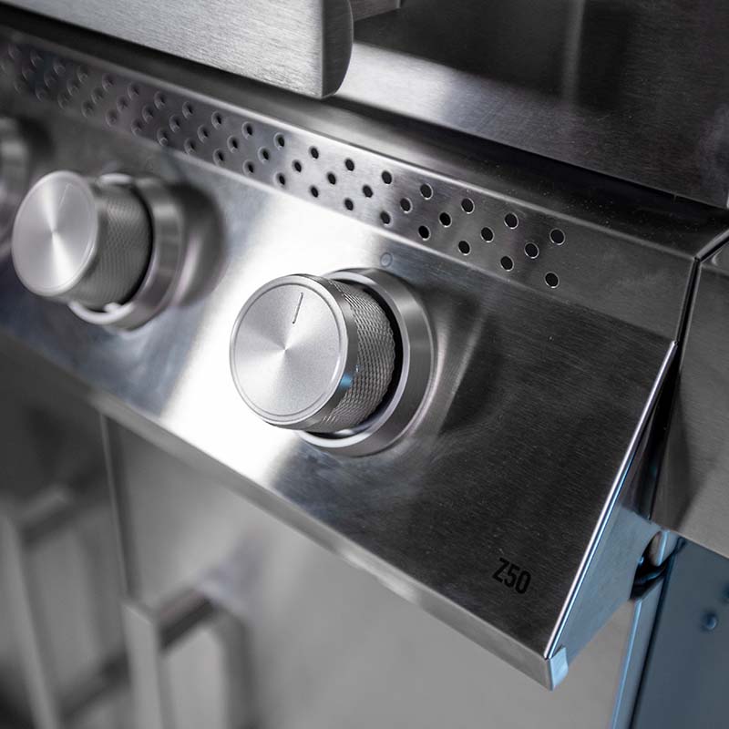 Z50 startes via piezotænding og er klar til grillning på kun få minutter. De fire effektive brændere, sammen med den integrerede sizzle burner, gør det nemt at skabe forskellige varmezoner, hvilket gør den ideel til at grille flere retter samtidig ved forskellige temperaturer. Det dobbeltisoleringens låg, med indbygget termometer, sikrer optimal varmeisolering og giver fuld kontrol over madlavningen.