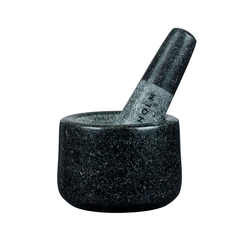 Wow! En mere æstetisk tiltalende morter skal man lede længe efter. Denne morter fra Holm består af et elegant sort ydre i poleret granit, der komplementeres af en stilren grå inderside i crisp uopoleret granit. Den medfølgende morterstok kombinerer den sorte og grå granit på en legende og stilren måde, hvilket skaber en følelse af fuldstændig symbiose. Denne sammensætning af hårdt og blødt, ying og yang, resulterer i en virkelig lækker morter, der pryder ethvert køkken.