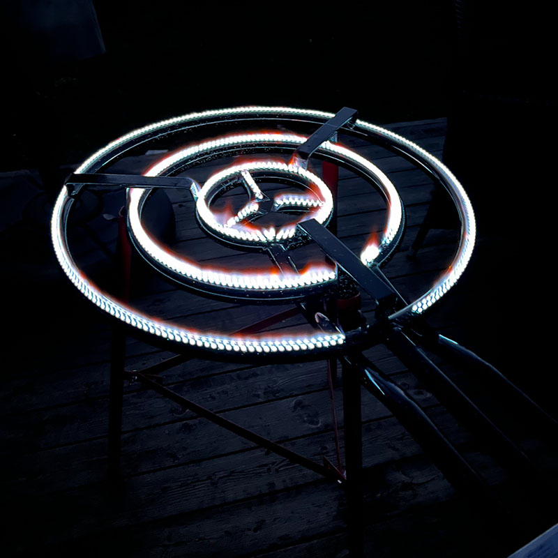 Lav mad over gas med en gasbrænder! Denne gasbrænder har tre brænderinge og passer til pander og plader mellem 26 og 80 cm.