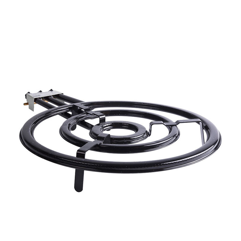 Lav mad over gas med en gasbrænder! Denne gasbrænder har tre flade brænderringe og passer til pander og plader mellem 26 og 90 cm.