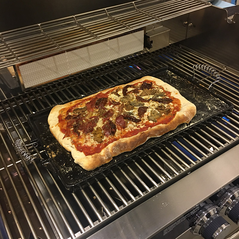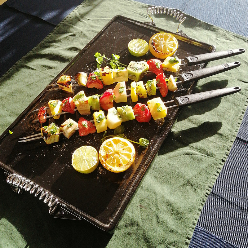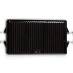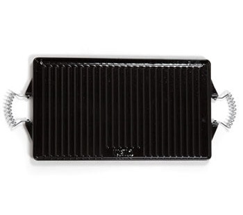 Vælg mellem lækker stegeskorpe eller grillmærker med denne store plancha i støbejern! Denne stegepande er 47 x 27 cm og har både en glat og en rillede side.