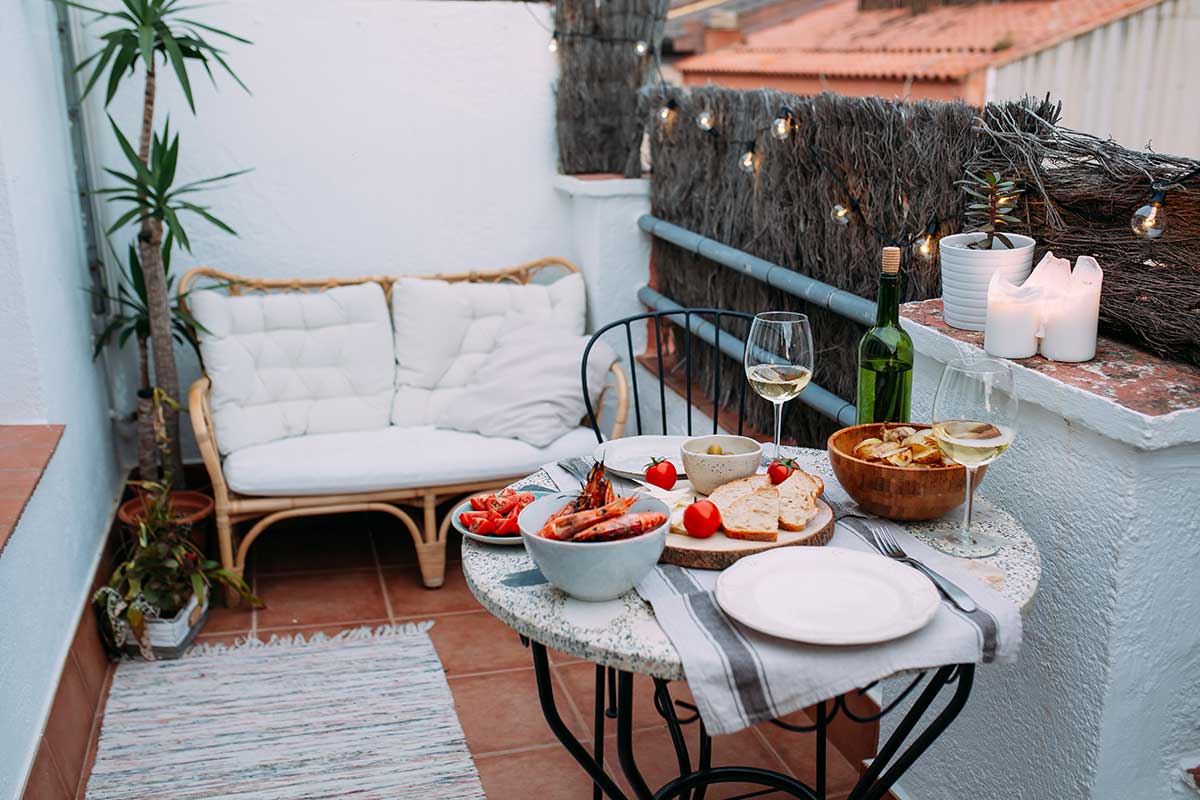 Skandinavisk minimalisme er fint, men de lande, der virkelig mestrer at skabe en hyggelig terrasse, er dem omkring Middelhavet. Annas stil er inspireret af det sociale samvær i lande som Frankrig og Italien – dette kan genskabes ved eksempelvis at placere en vinranke over spisebordet udendørs på terrassen. Oliventræer er også smukke træer til at indrette terrassen med. Oliventræer er tidløst charmerende og kan bruges både inde og ude, de er også nemme at passe.