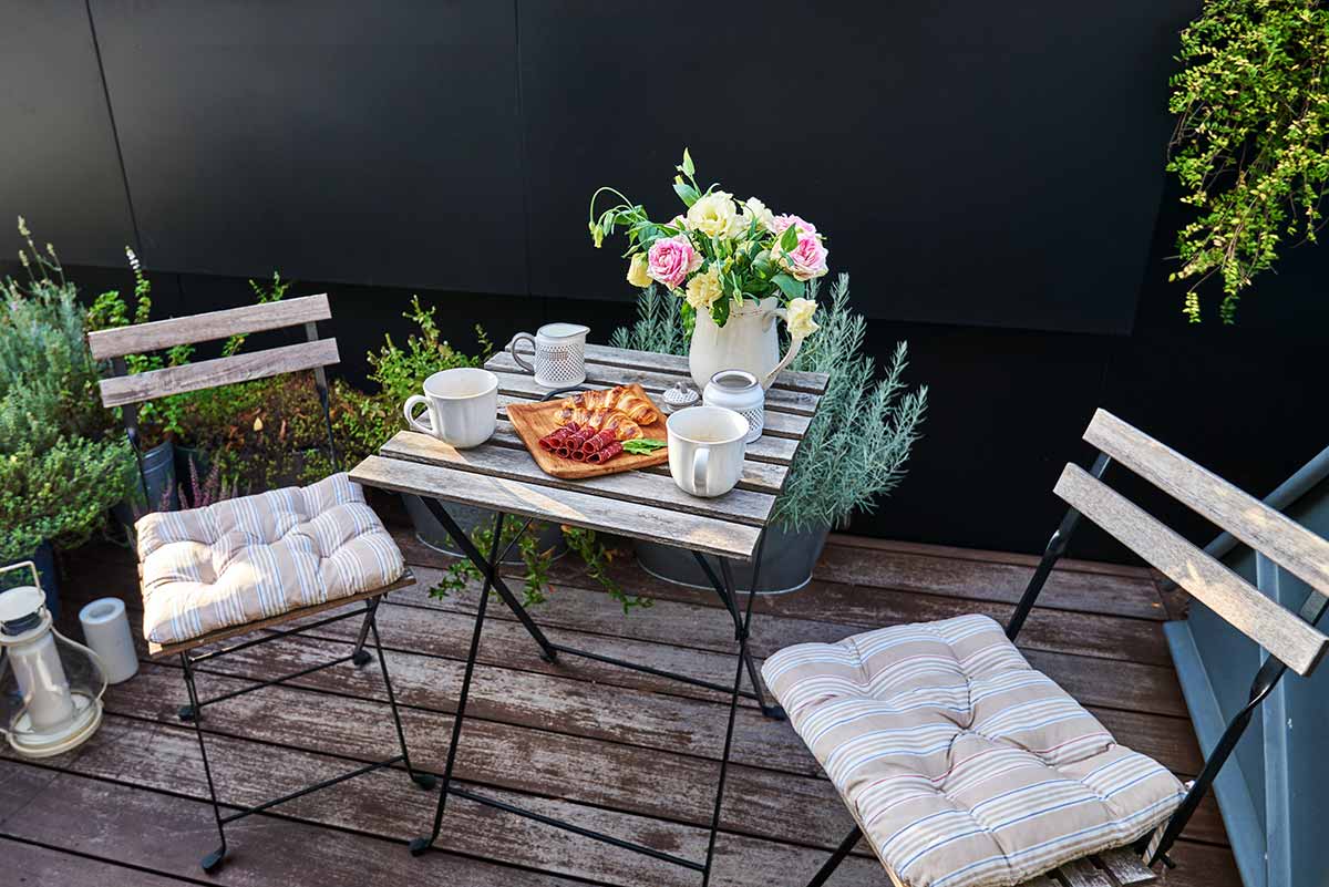En af de værste fejl, folk gør, er at købe en ny terrasse eller trædæk – og derefter ikke indrette mere på altanen. Resultatet bliver en stiv og kold terrasse. Modvirk dette med krukker i forskellige størrelser, der skaber dimension til rummet. Fyld dem med planter og blomster, der kan klare sig udendørs på egen hånd.