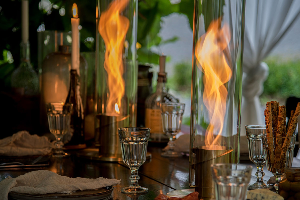 At pynte med levende lys eller en smuk ildlygte skaber en uovertruffen stemning af hygge og varme. Men prøv at holde en rød tråd i belysningen. For eksempel bør alle lamper i dit hjem følge den samme stemning. Dette betyder ikke, at de skal være identiske, men der skal være et gennemgående tema, der følger med i hele huset – også på terrassen. Klik på billedet nedenfor for at se, hvordan Anna har stylet Bluegaz ildlygter her: